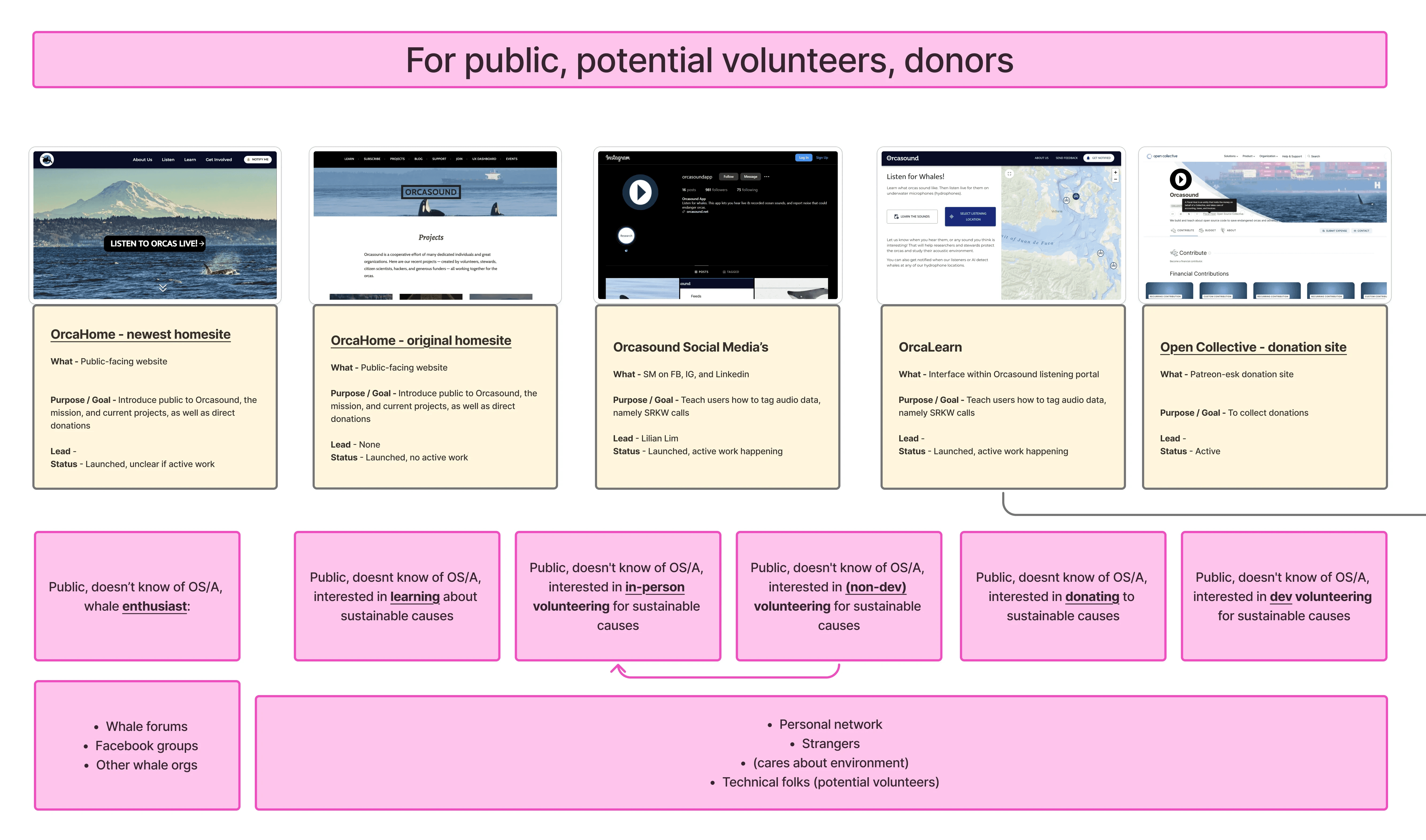 Identifying key opportunities for each group that contributes to Orcasound